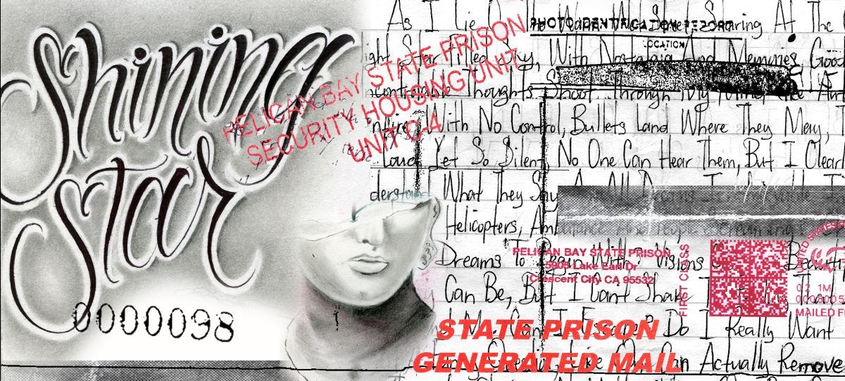 We have been receiving some emails about donations, so we decided to set up a few options. We put together a paypal for those who want to donate a dollar amount, or if you prefer to anonymously send him a gift, we have an Amazon wish list set up, where you can send him some things he needs / wants. Lastly, you can also purchase a copy of his Poetry book. It's a collection of short poems during his 7 years in Solitary Confinement, alongside my ink drawings.