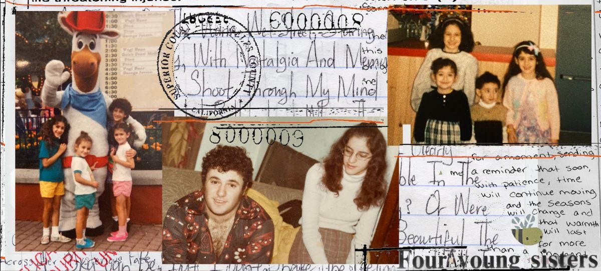 Magida: One day, my mom said she needed to talk to us, and she took us to her bedroom and sat us on her bed. I wonder if we were all asking questions by this point. I can’t imagine how long she must have been preparing for this day. She had this drawer in her bedroom, the handles were missing, and I think she took a pencil and jammed it in the hole and pulled it open. She proceeded to show us photos of my sisters and their past life together. I don’t remember how I felt. I was under the age of 9, but it was one of the first times I was introduced to death. The concept of being here and then not being here, and trying to wrap my head around it. After that conversation with my mom, I started to sneak into her room a lot, breaking into that drawer to go through her things, trying to learn more about them. I was fascinated by them. One day, I found this yellow 80s Walkman in there, and I don’t know what I was thinking, but I took it into my bedroom. I had it on my head, and I was playing with it. I looked up, and saw my dad standing in the doorway of my room, and he was staring at me. A blank stare, this look in his face that I'd never seen before. He was in complete shock. He stared at me for a minute, and started to cry. Without a word, he walked up to me and aggressively ripped the headphones off my head, tears coming down his face and walked away. I think that’s when I realized that this was a topic that I could never bring up, and if I was to be sneaking around invading their privacy, I was gonna have to be better at hiding it.