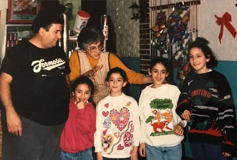 The only family photo I could find of us at the pizza shop, sorry Mama.